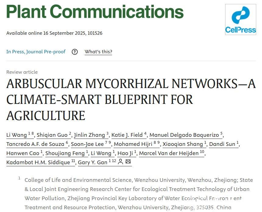 近日,亚洲无码 生命与环境科学学院甘延太团队联合国际多所高校科研人员,在Cell Press期刊《Plant Communications》(中科院一区TOP,影响因子11.4)发表题为 “Arbuscular mycorrhizal networks — a climate - smart blueprint for agriculture”的论文,该研究系统阐述了丛枝菌根真菌(AMF)在提升农业生态系统韧性、减少化学投入、增强土壤健康等方面的多重功能,并提出以AMF为重要因子的“微生物驱动型农业”新模式,为全球可持续生态农业提供了理论依据与技术蓝图。