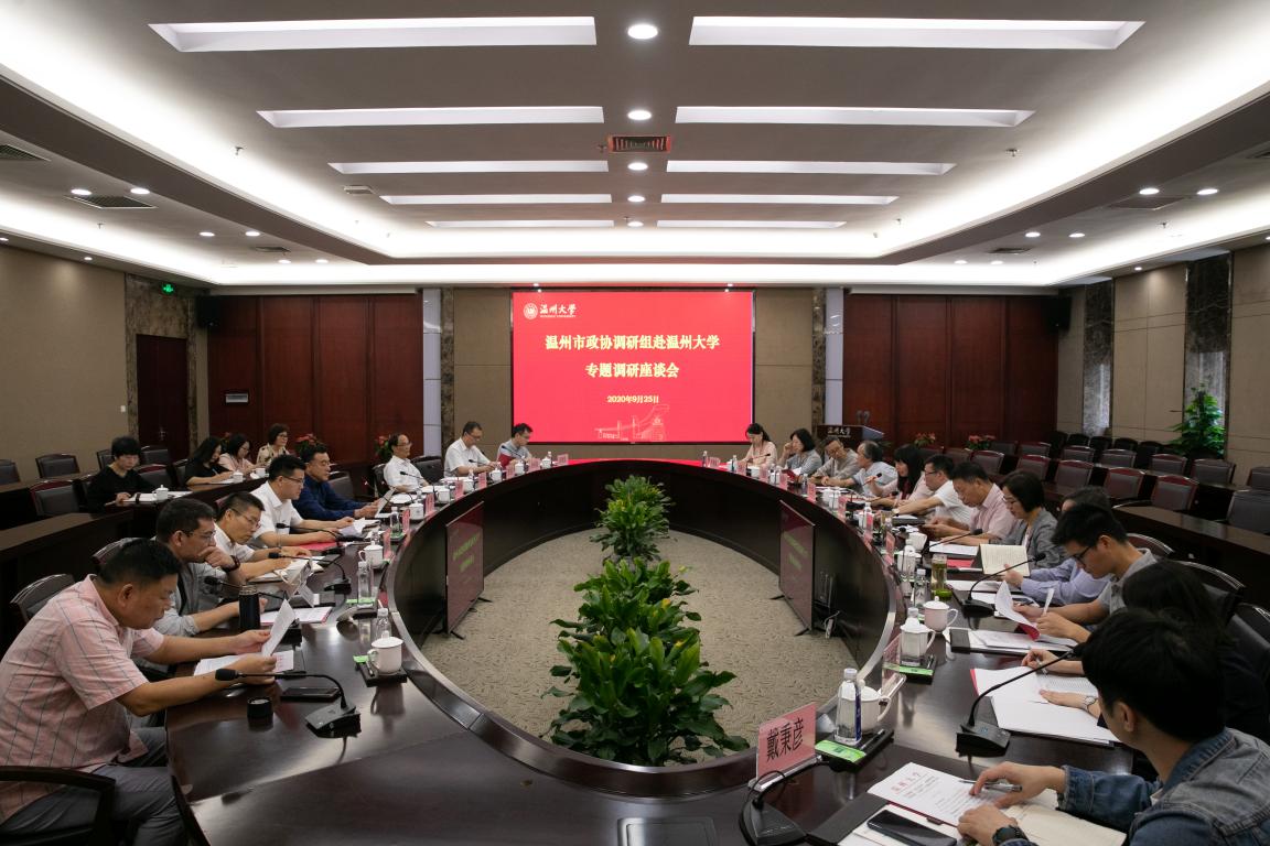9月25日上午,由温州市政协副主席徐有平、秘书长潘建炳,文化文史和学习委主任吴文玲、副主任孙智勇等组成的市政协调研组莅临亚洲无码 调研指导。副校长薛伟出席接待,相关专家学者参加调研座谈。