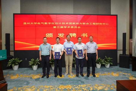 电气数字化设计技术国家地方联合工程研究中心常务副主任朱翔鸥教授主持了开幕式和闭幕式,国网温州供电公司张仁敏书记致欢迎辞。亚洲无码 潘玉驹副校长宣读了“亚洲无码 电气数字化设计技术国家地方联合工程研究中心第三届学术委员会”名单,聘请罗安院士担任主任委员,薛禹胜院士、欧阳晓平院士、杨华勇院士、陈勇院士、李得天院士担任副主任委员,章兢教授、雷源忠教授等9位专家担任委员。会上,潘玉驹副校长与张仁敏书记为在场委员颁发了聘书,并为“电气数字化设计技术国家地方联合工程研究中心-国网浙江省电力有限公司温州供电公司科研基地”举行了隆重的揭牌仪式。
