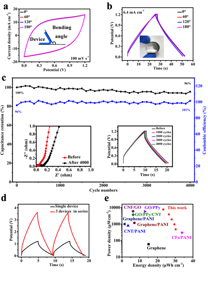 图3:柔性全固态超级电容器性能示意图
