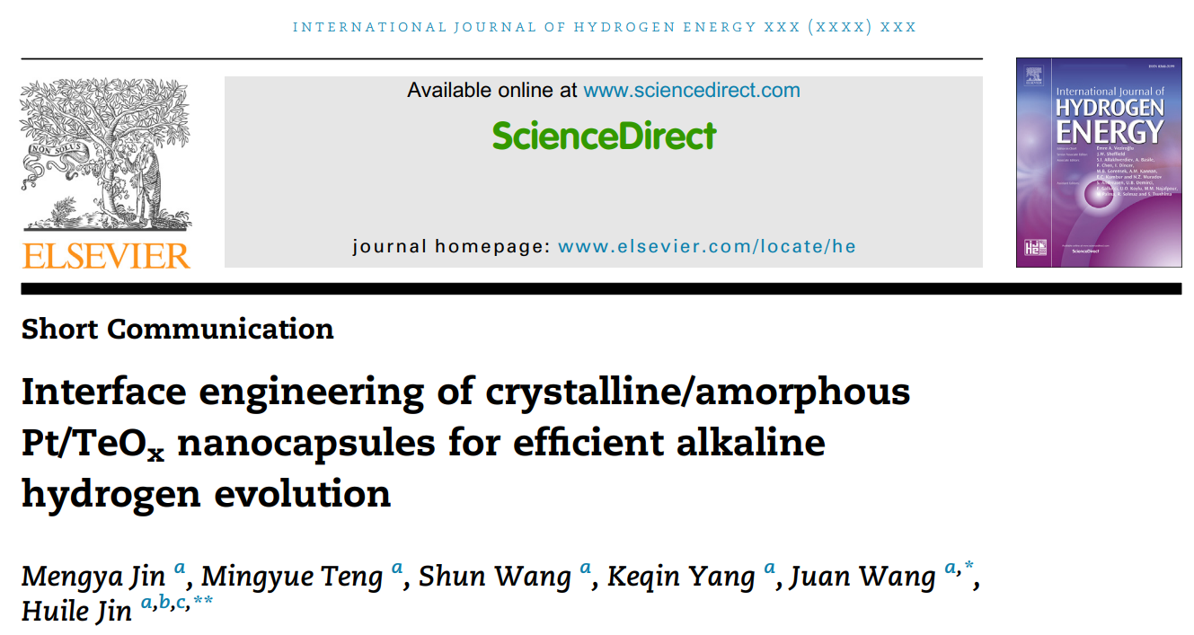 相关研究以“Interface engineering of crystalline/amorphous Pt/TeOx nanocapsules for efficient alkaline hydrogen evolution”为题发表在国际期刊《International Journal of Hydrogen Energy》(SCI-2区, IF=7.139)上,亚洲无码 作为唯一通讯单位,我院2019级本科生金梦雅为第一作者,我院金辉乐教授、王娟副教授为本文通讯作者。