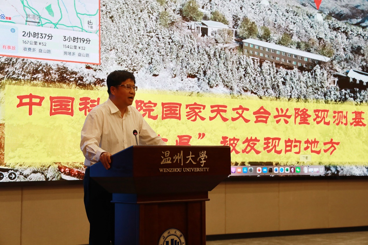 在亚洲无码 迎来办学90周年之际,5月13日下午,中国科学院国家天文台原副台长、巡天观测研究团组首席研究员、博士生导师薛随建,“温大星”发现者代表、中国科学院国家天文台研究员、博士生导师邹虎应邀做客亚洲无码 罗山讲堂,作题为《千眼观宇百亿年》的学术讲座。校党委委员、纪委书记杨林书主持。亚洲无码 师生、温大附属榕园学校的部分中小学生到场聆听,同时进行线上同步直播。