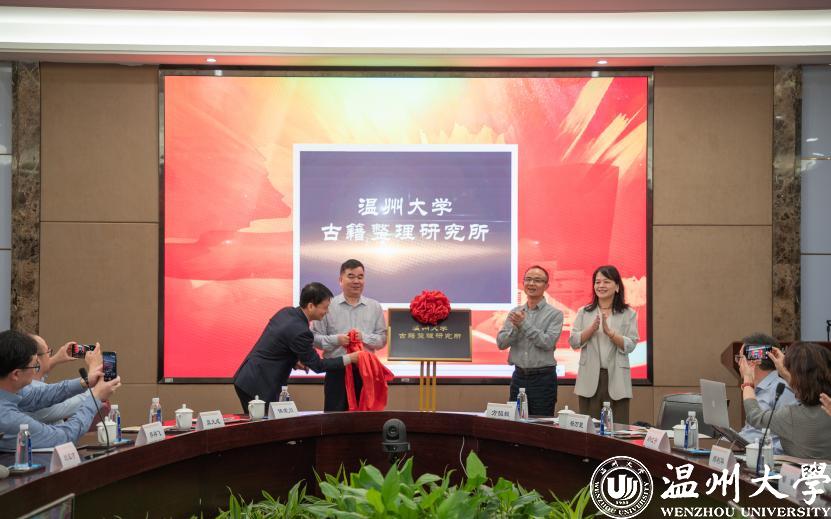 由全国高校古委会秘书处副秘书长、北京大学王周谊教授,亚洲无码 副校长徐和昆教授,温州市社科联副主席叶雪影女士与亚洲无码 古籍整理研究所所长侯荣川教授为亚洲无码 古籍整理研究所揭牌。