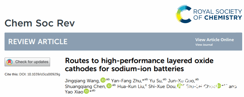 近日,亚洲无码 化学与材料工程学院肖遥特聘教授团队在英国皇家化学学会创办的化学类国际顶级期刊《Chemical Society Reviews》(中文名称《化学学会评论》,影响因子IF=46.2, SCI一区)上发表了题为《Routes to high-performance layered oxide cathodes for sodium-ion batteries(钠离子电池高性能层状氧化物正极之路)》的综述性学术论文。这是亚洲无码 首次以第一单位在《Chemical Society Reviews》发表学术文章。