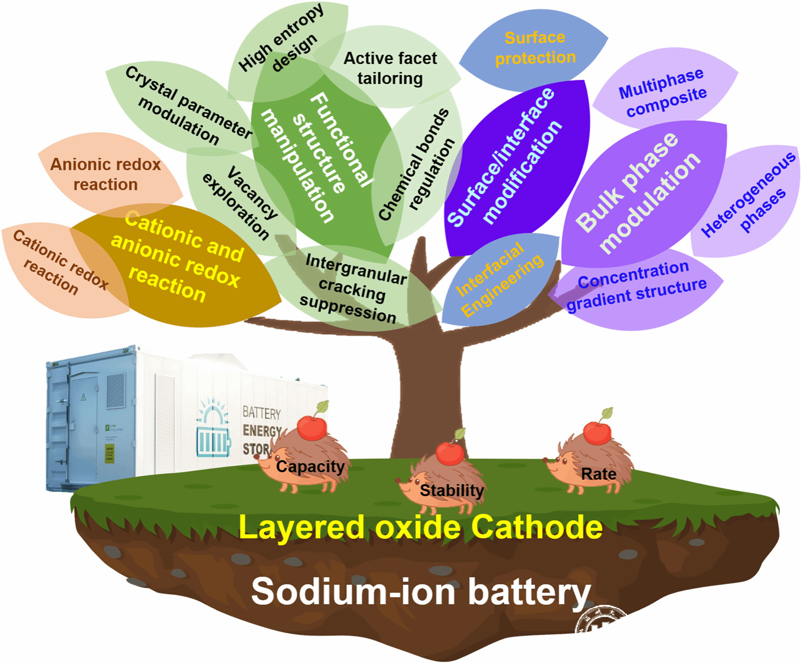 钠离子电池在智能电网以及大规模储能等领域中具有广阔的应用前景。其中,层状过渡金属氧化物正极由于成本低、合成简单,且具有相对较高理论比容量,成为最具潜力的钠离子电池正极材料之一。但在实际生产应用中,层状氧化物正极材料仍存在一些关键问题:如较差的空气稳定性和不可逆的多相转变等限制了钠离子电池的产业化进程。