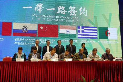 随后进行了项目签约和联盟成立仪式,现场共有22个项目集中,主要涉及到产学研合作签约、招商引资项目签约和一带一路合作签约,合作国别达到7家。真正的实现了提高激光与光电、智能制造领域学术和研究水平、搭建国际交流桥梁、汇聚吸纳青年英才来温创新创业、服务地方经济社会发展的初心。