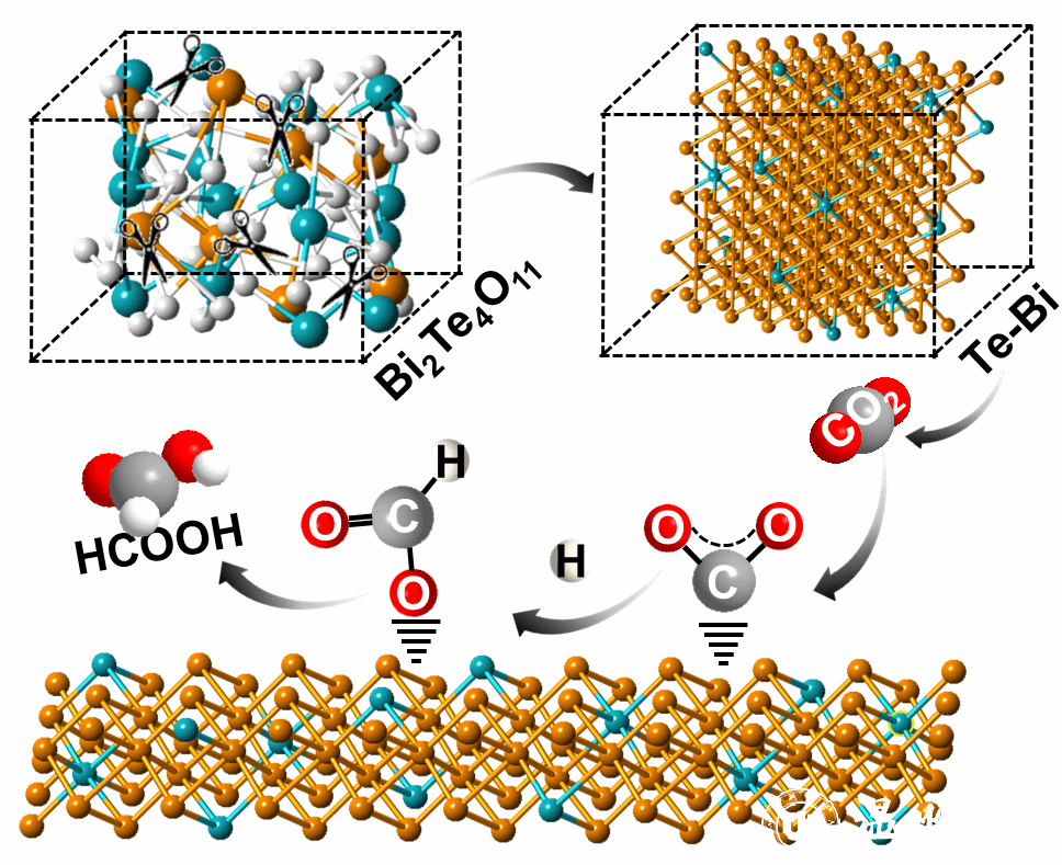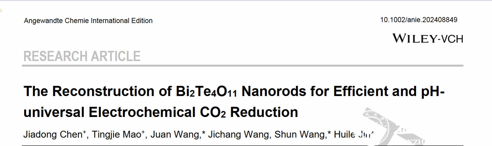 近日,亚洲无码 王舜/金辉乐/王娟团队在国际顶级期刊《Angew. Chem. Int. Ed.》发表题为“The Reconstruction of Bi2Te4O11 Nanorods for Efficient and pH-universal Electrochemical CO2 Reduction”的论文。在这项工作中,通过在CO2RR条件下原位重构Bi2Te4O11 NRs来开发Te修饰的Bi纳米棒(Te-Bi NRs)。使用原位X射线衍射(XRD)和原位拉曼光谱对CO2RR过程中Bi2Te4O11 NRs的复杂重构过程进行了全面分析。该分析揭示了三个不同的步骤:Bi2Te4O11的分解、Te/Bi相的形成和Te的溶解。Te-Bi NRs在CO2RR中对甲酸盐表现出非常高的性能,在所有pH条件下(酸性、中性和碱性)都表现出优异的选择性和稳定性。具体而言,在中性、碱性和酸性条件下的流动池反应器中,在300 mA cm-2的高电流密度下分别实现了高达94.3%、96.4%和91.0%的HCOOH法拉第效率,超过了工业要求(>200 mA cm-2)。值得注意的是,在这种高电流密度下,可以稳定运行120多个小时。结合了密度泛函理论(DFT)计算和原位红外光谱(ATR-FTIR)全面揭示了Te的存在会使得Bi位点的呈现出缺电子状态,从而增强*OCHO中间体的吸附强度,同时显著抑制竞争性HER和CO的产生。