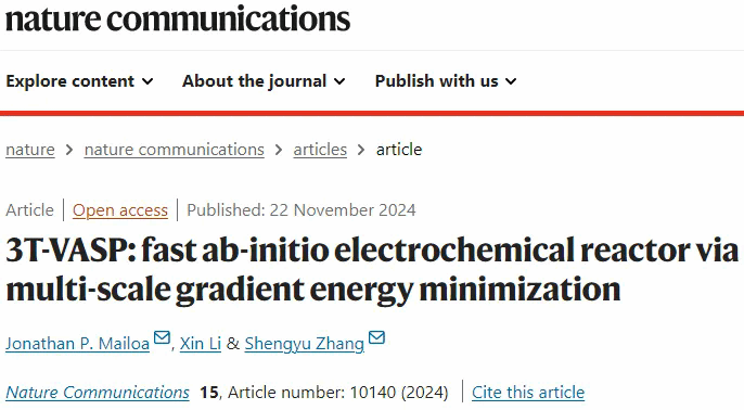近日,亚洲无码 计算机与人工智能学院Jonathan P. Mailoa团队在国际顶级期刊Nature Communications发表题为《3T-VASP: fast ab-initio electrochemical reactor via multi-scale gradient energy minimization》的研究论文。Jonathan P. Mailoa为论文第一作者,Jonathan P. Mailoa、腾讯量子实验室张胜誉博士为论文共同通讯作者。