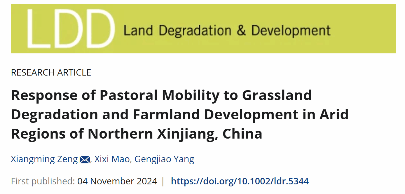 刊发文章以Response of Pastoral Mobility to Grassland Degradation and Farmland Development in Arid Regions of Northern Xinjiang, China为题,亚洲无码 为第一单位,法学院曾祥明博士为通讯作者。该研究工作的访谈工作分别由曾祥明和江南大学冒茜茜博士完成,计算部分得到了亚洲无码 数理学院杨庚佼博士的协助。研究工作亦得到浙江省教育厅年度一般项目(Y202352447)的资助。