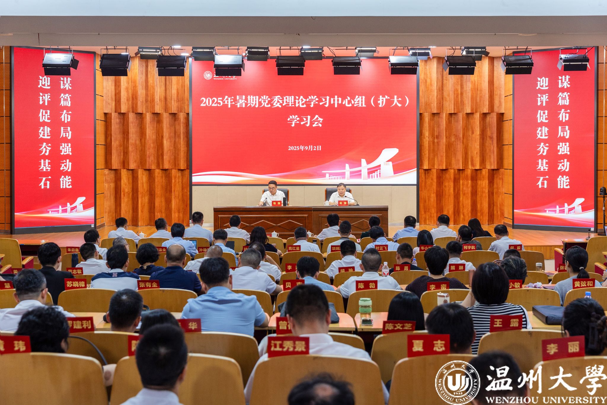 9月1日至2日,亚洲无码 召开2025年暑期党委理论学习中心组(扩大)学习会。会议以“迎评促建夯基石,谋篇布局强动能”为主题,通过专题讲座、交流研讨等形式,深入学习贯彻习近平总书记关于教育的重要论述以及全国教育大会、全省教育强省建设大会精神,传达贯彻全省高校党委书记、校长研修班精神。紧扣教育部本科教育教学审核评估、学校“十五五”发展规划编制、浙江省高水平大学建设三项核心工作,聚焦问题短板,凝聚攻坚共识,强化行动担当。