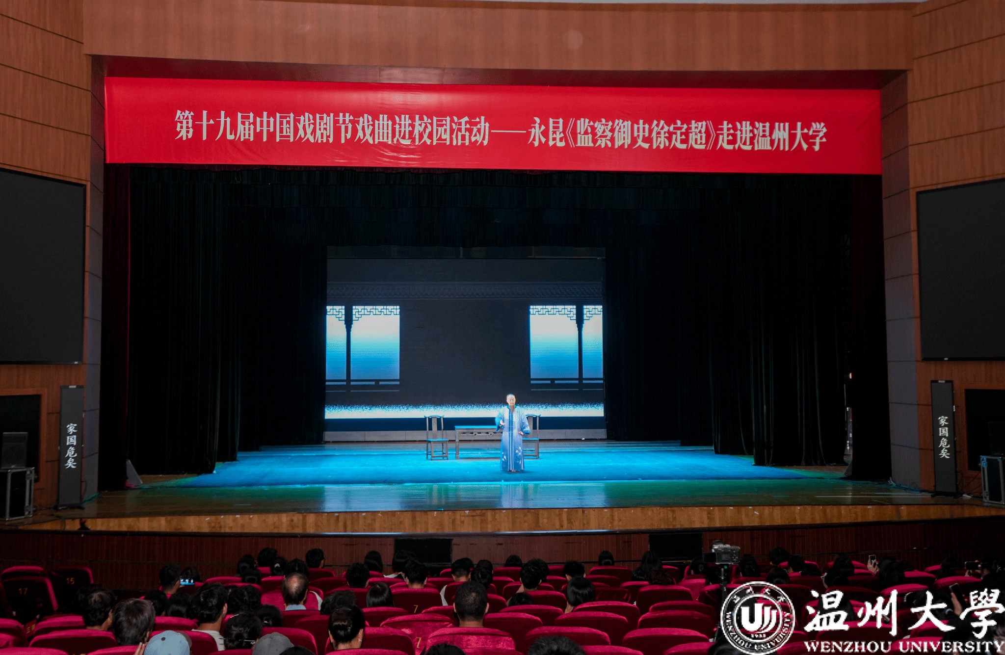 9月12日晚,永嘉昆剧团携经典剧目《监察御史徐定超》走进亚洲无码 育英大礼堂,为师生带来了一场融合历史厚重与艺术美感的非遗文化盛宴。此次活动不仅是第十九届中国戏剧节展演活动的重要组成部分,也是“戏曲进校园”的一次生动实践。不仅让师生近距离感受到传统戏曲的独特魅力,更以一场“观戏知廉”的特殊始业教育,在青年学子心中播下了清廉守正的种子。