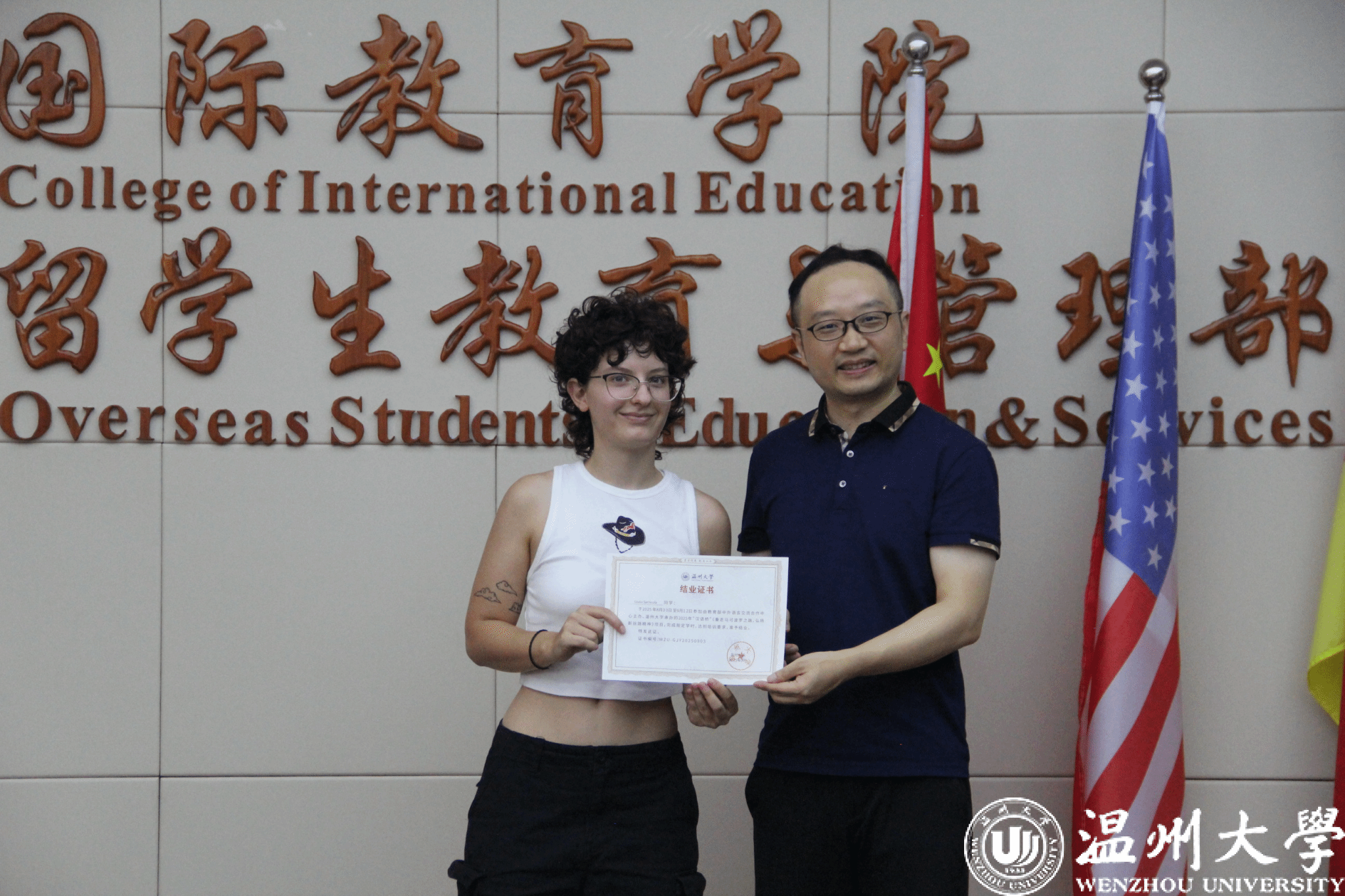 “这个项目不仅让我提前熟悉了未来两年生活的城市,更让我透过温州这扇‘窗口’,触摸到了中国文化的深厚底蕴——汉语不再是课本上的字符,而是能对话、能共情的‘文化纽带’。”来自锡耶纳大学的池永欣(Tommaso Pizzicori)道出了众多同学的心声。来自米兰圣心大学的索菲亚(Sofia Jarach)动情地说:“‘汉语桥’不只是一座语言学习的桥,更是一座连接中意青年心灵的桥。在这里,我不仅亲身体验了发绣、茶道这些令人惊叹的中国传统,更深入了解了中国教育‘立德树人’的初心。我会把这份经历分享给身边每一个人,因为这是一扇通往神奇东方文明的大门。”