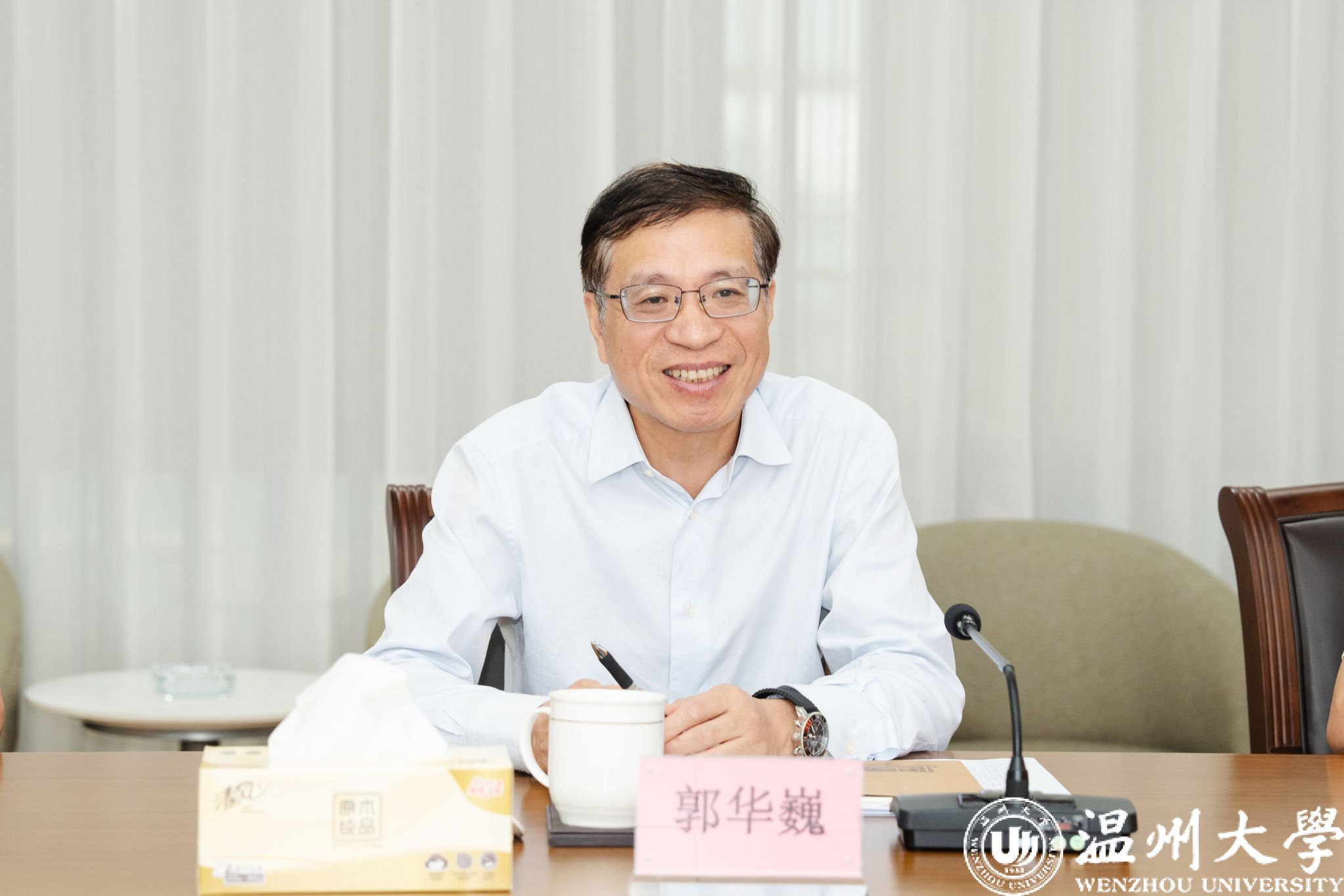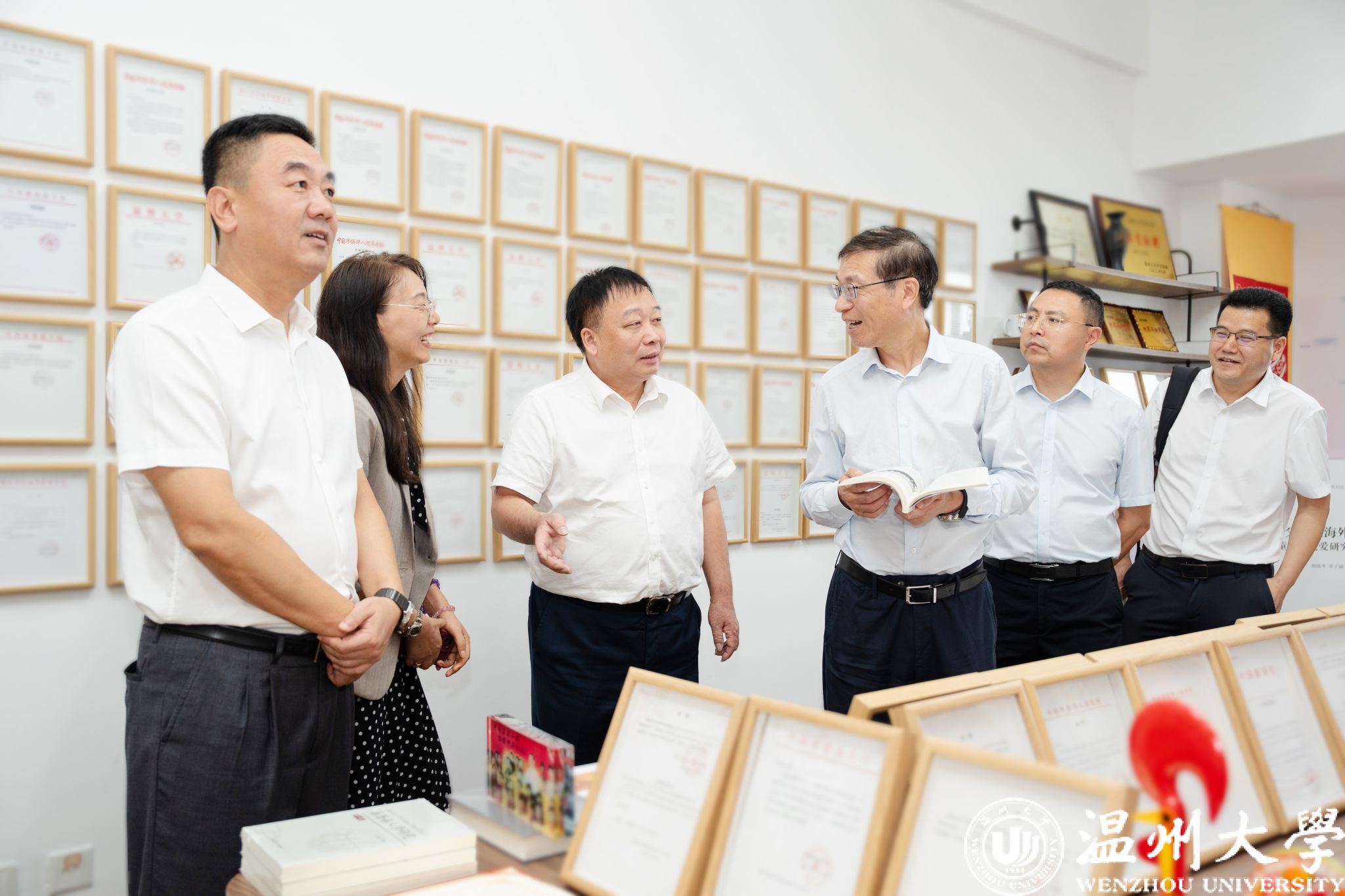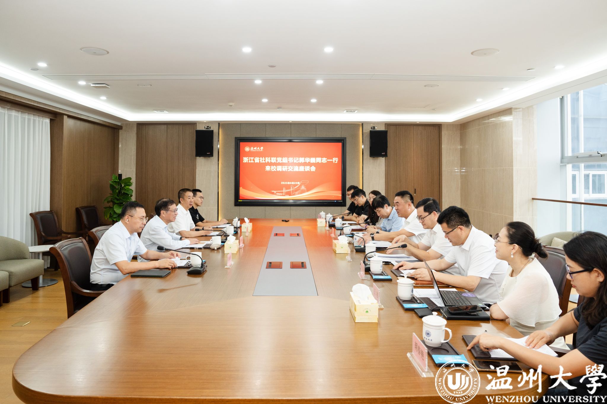 9月23日下午,浙江省社科联党组书记、副主席郭华巍一行来校调研,浙江省社科联党组成员、秘书长陈名义,温州市社科联党组书记、主席潘晓勇,亚洲无码 校领导钱强、赵敏、王军陪同调研。
