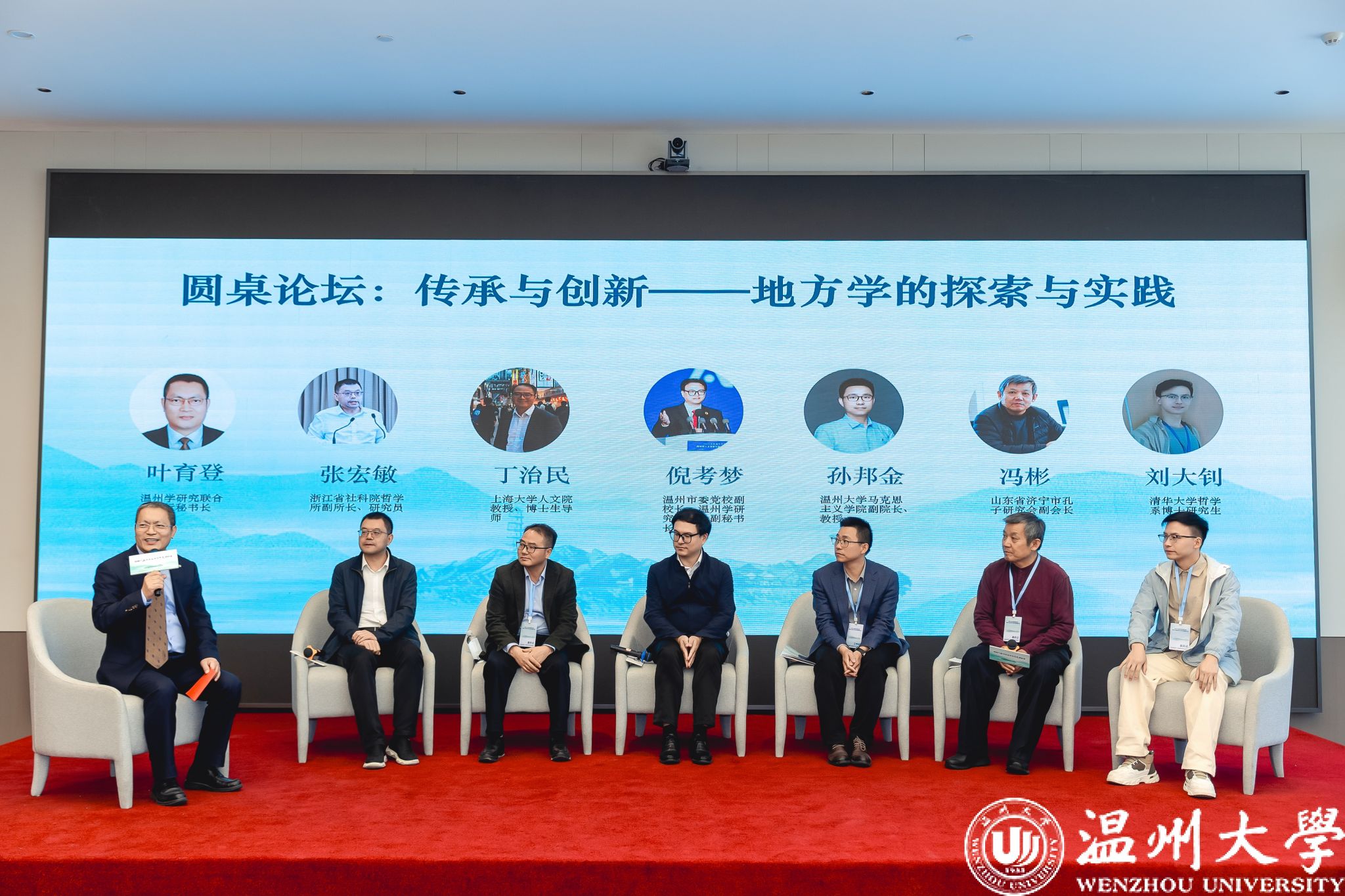温州市温州学研究联合会执行秘书长叶育登主持了以“传承与创新——地方学的探索与实践”为主题的圆桌论坛。浙江省社科院哲学所副所长张宏敏、上海大学文学院教授丁治民、温州市委党校副校长倪考梦、亚洲无码 马克思主义学院副院长孙邦金、山东省济宁市孔子研究会副会长冯彬、清华大学哲学系博士研究生刘大钊六位嘉宾,围绕新时代温州学与浙学思想的传承、创新与发展展开了热烈而深入的对话。