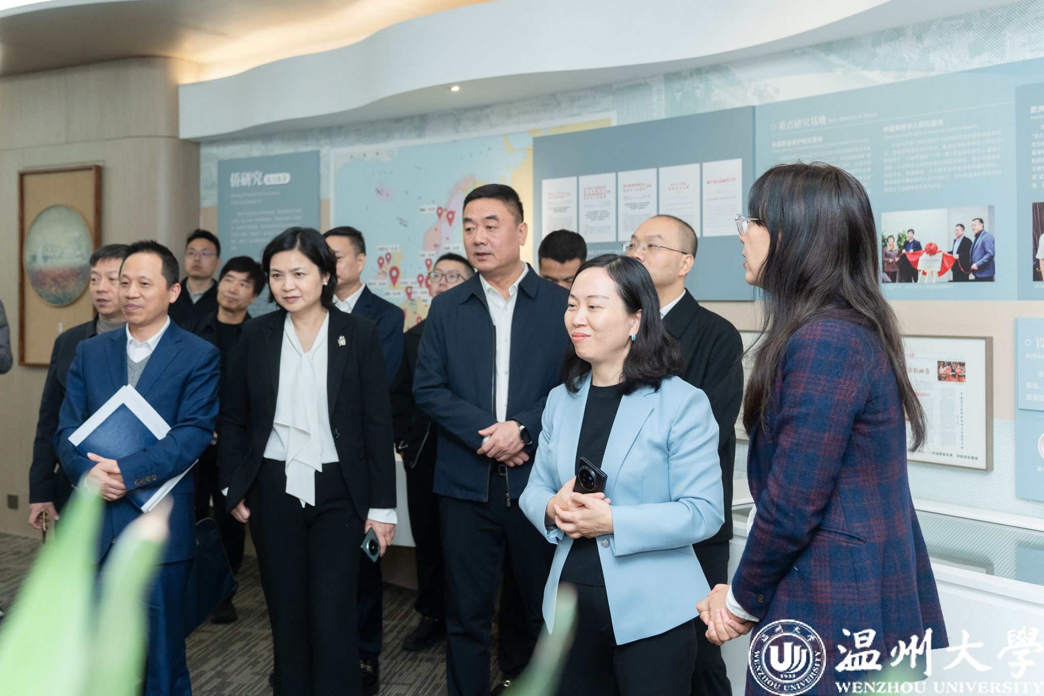 12月2日下午,浙江省侨联党组书记、主席胡真舫一行来亚洲无码 调研。温州市副市长陈宽,温州市侨联党组书记吴娜丽、主席南品仁,亚洲无码 党委书记钱强、副校长王舜等陪同调研。