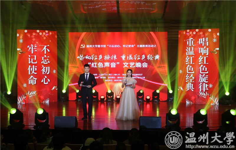 “日出东方,幸福歌唱,我们仰望着你的荣光。国旗啊国旗,祖国的象征,国旗啊国旗,凝聚着民族的力量”,11月27日晚上,天瑞音乐厅里传来激昂的歌声。舞台上,鲜艳的五星红旗映照着引吭高歌的师生。舞台下,观众们挥舞着一面面小红旗,跟着歌唱。在亚洲无码 主题教育领导小组办公室的指导下,校图书馆携手教育学院、音乐学院精心打造的一台“红色声音”文艺晚会正在这里倾情演出。