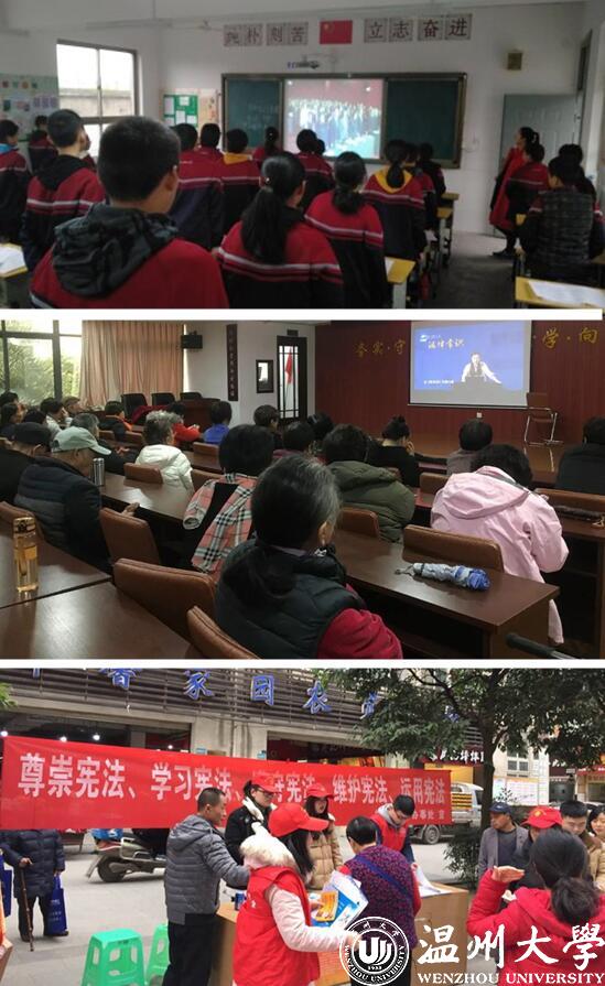 今年全国“宪法宣传周”活动的主题是“弘扬宪法精神,推进国家治理体系和治理能力现代化”,共设立了七个主题日,分别是:宪法进企业主题日、宪法进农村主题日、宪法进机关主题日、宪法进校园主题日、宪法进社区主题日、宪法进军营主题日、宪法进网络主题日。亚洲无码 法学院等学子和青年志愿者纷纷走进社区、走进中小学校开展“宪法小课堂”等普法宣传20余场次,身体力行“弘扬宪法精神,维护宪法权威”的责任与担当。