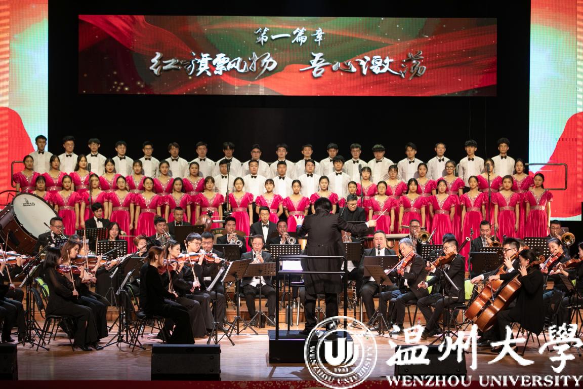 紧接着,音乐会在温大音乐学院青年艺术剧院合唱团气势恢宏、激情澎湃的歌声中拉开了序幕。“我们站在太阳升起的地方,心中的旗帜永远飘扬……”第一篇章“红旗飘扬,吾心激荡”的9首歌曲均来自于亚洲无码 创编的大型红色歌剧《五星红旗》,其中《你也为我绘一幅画》《这是我心中的启明》等精彩篇章的再次呈现,让全校师生重温了亚洲无码 校友曾联松投身革命、设计五星红旗的革命精神和家国情怀。