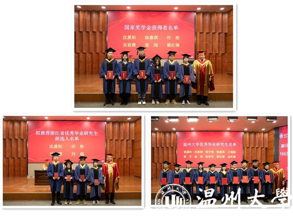 校党委庄兴忠副书记宣读了亚洲无码 优秀毕业研究生名单、拟推荐浙江省优秀毕业研究生名单和国家奖学金获奖者名单,校领导为20名获奖同学颁奖并合影留念。