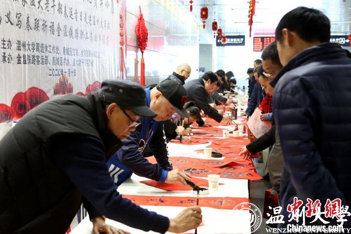 书法家、书法爱好者们写下新年祝福和美好的祝愿。金温铁路供图