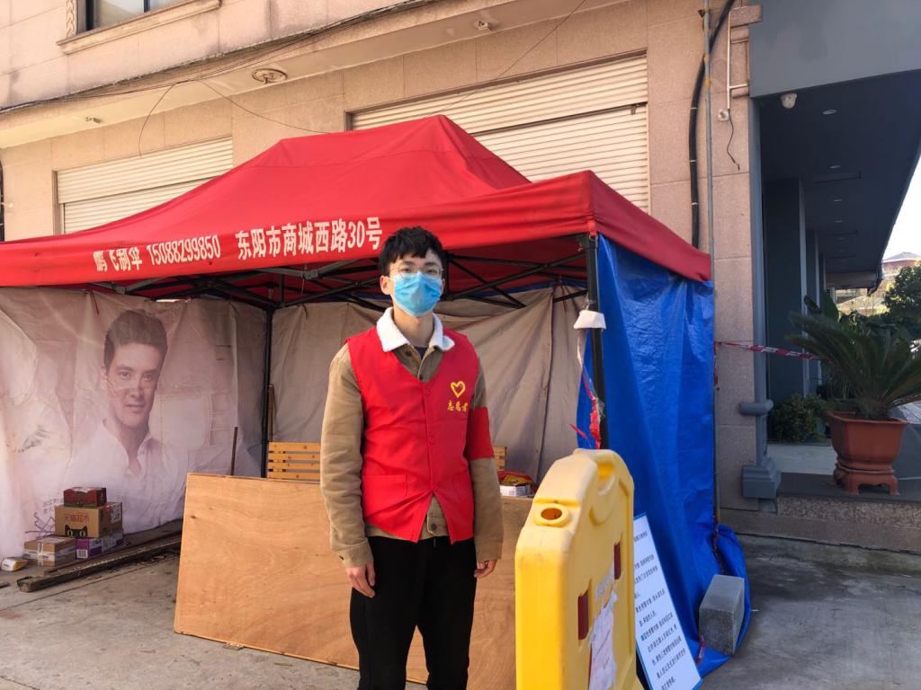 对从2月1号就开始进行志愿者工作的18化学创新班汤晓栋同学来说,他已经在这个岗位上兢兢业业工作了17天。禁止外地人进村、给往来的村人测量体温并记录是他志愿者工作的日常。值班的时间段安排是凌晨四点到八点,晚上八点到十二点,下午十二点到四点,刚刚值完夜班的晓栋说,每天在平均温度3、4摄氏度的室外伫立,经常腿都麻了。为了御寒,他值班时常常不停的搓膝盖,尤其是晚上夜班,更是寒风刺骨。家人一开始很不解甚至一度劝他别去了,半夜值班太辛苦了。“可是晚上也总得有人去守着,这不也是在保护大家吗。没事,我的身体好的很呢!”每天早早地吃好了饭,披上一件大棉袄,就风风火火地出门了,与家人的交流都留在微信里。伫立在空荡的路边,任凭寒风瑟瑟,晓栋的背影似乎显得愈发清冷,却愈发清晰和高大。