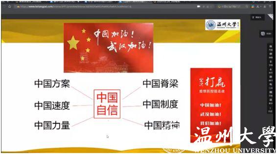 疫情防控期间,根据教育部、亚洲无码 等相关文件精神,亚洲无码 马克思主义学院充分利用线上教学平台、现代教学技术和优质在线课程资源,全面启动新学期线上教学与管理工作。本学期共有思政课涉及全校16个学院的104个教学班。按照“停课不停教不停学”的总体要求,温大思政课全面开启“三全”线上教学:战“疫”在线“主播”思政全覆盖、战“疫”专题思政第一课全新讲、战“疫”在线思政课程全共享。