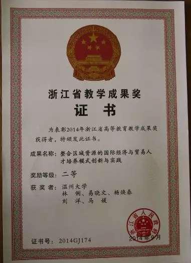 得益于对日渐增长的国际贸易需求的精准把握和“一二三”人才培养模式的有效实施,国贸专业培养的学生综合能力不断增强。该专业参与完成的教学研究成果《面向中小企业的地方本科高校应用型人才培养探索与实践》获国家级教学成果奖,主持完成的《整合区域资源的国际经济与贸易人才培养模式创新与实践》获浙江省教学成果奖。近三年,该专业学生获国家级、省级主要学科竞赛奖共计38个;其中,全国高校商业精英挑战赛国际贸易竞赛一、二等奖6个,国家级大学生创新创业训练计划项目3个。2015级国贸专业学生刘光宇在校期间就创立了浙江积水石科技有限公司,并入选“2018年全国大学生创业英雄10强”。