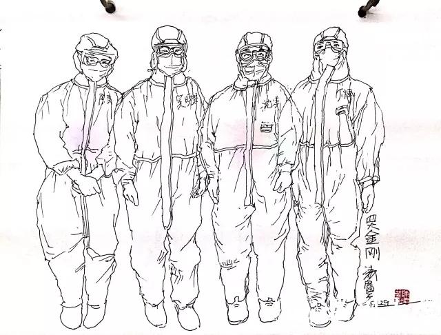陈凌广校友以邵逸夫医院放射科14名普通医护人员为创作对象,用画笔记录驰援武汉邵逸夫医院一线抗疫的白衣战士。《重症卫士》《四大金刚》等艺术作品表达了陈凌广校友对医者的崇敬、对生命的敬畏,让看见这些画的人们意识到“艺术助力抗疫战”不是一句口号,而是一个个生动形象背后感人至深的故事……