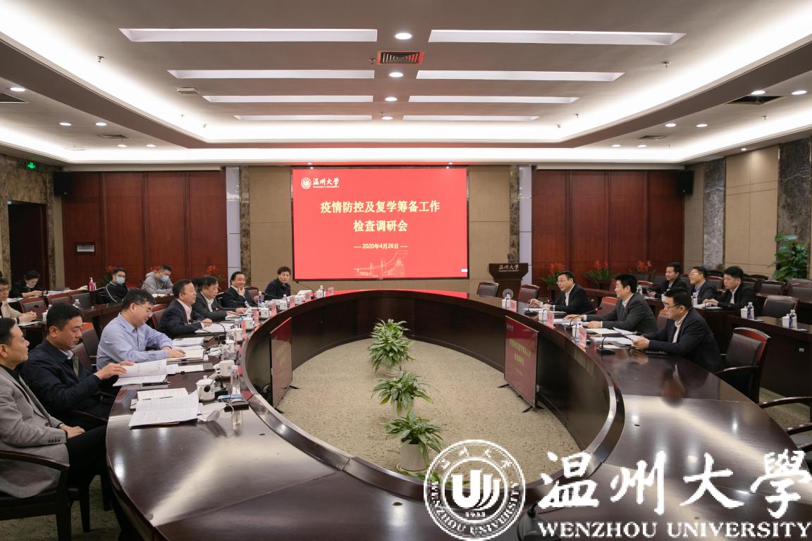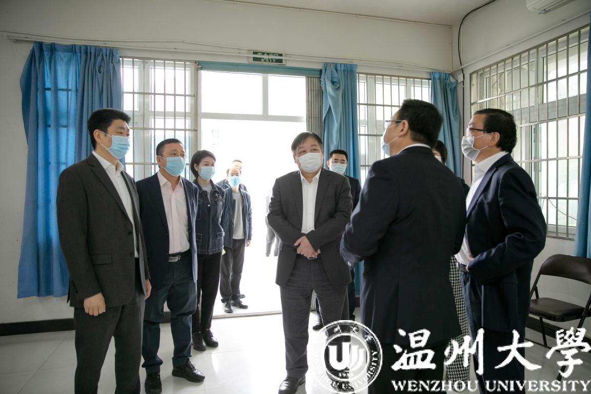 4月26日上午,温州市委副书记、政法委书记陈浩,市委副秘书长包光许,市教育局局长郑建海一行莅临亚洲无码 ,对学校疫情防控及复学筹备工作进行督导座谈。校党委书记谢树华、校长赵敏、副校长蔡曙光及党校办、后勤管理处、保卫处等相关部门负责人陪同。