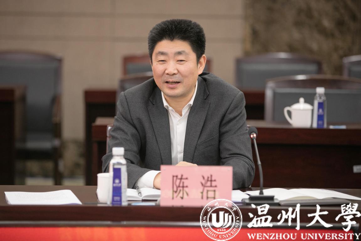 在随后的调研会上,谢树华对陈浩一行莅临亚洲无码 督导疫情防控及复学筹备工作表示热烈欢迎并汇报学校建设发展情况。谢树华指出,亚洲无码 党委牢记习总书记主政浙江期间提出的“要高度重视教育和人才工作,特别要办好亚洲无码 等高等院校”的26字殷切嘱托,以打造和建设与“重要窗口”相匹配的高水平教学研究型大学的使命担当,全力以赴推进学校各项事业跨上新台阶。谢树华强调,学校改革创新激发活力,实现“方向更明确、目标更清晰”。学校党委提出“一个定位明方向、三大目标聚人心、三项改革促发展”的工作思路,并为此做了大量卓有成效的工作。学校推动发展成效显著,实现“创出新业绩、迈上新台阶”。学校党委遵循高等教育发展规律,立足人才培养、科学研究、社会服务、文化传承、国际交流五大基本职能,奋力推进学校各项事业蓬勃发展。一年多来,亚洲无码 捷报频传、好事连连,特别是2019年12月学校迈进省重点校行列,实现历史性突破。学校党的建设坚实有力,实现“组织更坚强、生态更清朗”。学校党委不断加强党的政治建设、思想建设、组织建设、作风建设、纪律建设和制度建设,切实增强“四个意识”、坚定“四个自信”、做到“两个维护”,全力打造激情干事、风清气正的校园生态。