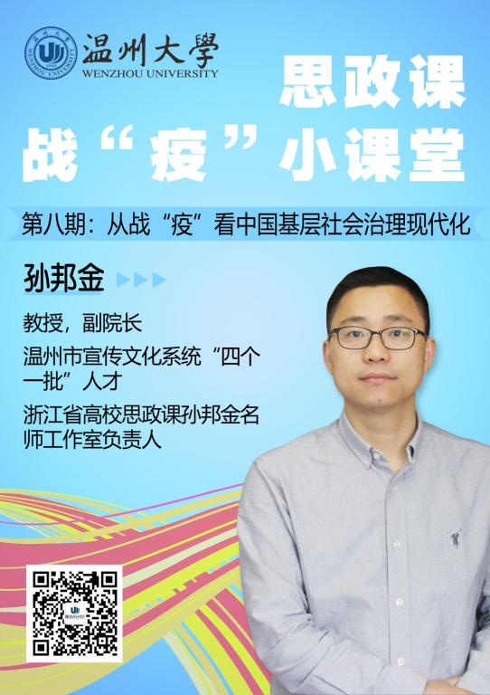 本期推出马克思主义学院副院长、教授孙邦金老师思政课战“疫”小课堂:从战“疫”看中国基层社会治理现代化。