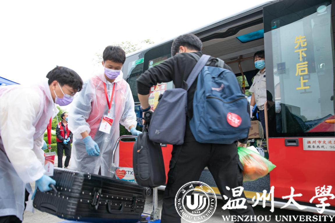 “现在都晚上10点了,刚下车就看到了温大的接站点,老师和志愿者们来接站,很暖心!”亚洲无码 人文学院的杨佳伲同学感动地说,“刚刚已经扫码报到,行李也消毒了,等下搭乘学校的大巴返校,非常方便。”