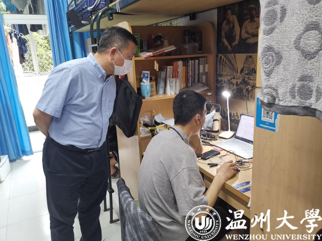 谢树华书记一行先后走访了溯初学区、超豪学区、步青学区和专家楼隔离点等场所。谢书记走进学生寝室,一一了解寝室同学返校生活和线上学习状况,询问他们目前在学习和生活中遇到的实际困难,叮嘱他们一定要做好个人防护。谢书记与返校学子亲切交谈,了解大家对学校前期返校工作各项安排的想法和对后续工作的的意见和建议。谢书记现场听取了研工部、学工部、资产经营公司有关学生公寓区疫情防控的工作汇报,就学生返校后严格落实网格化管理、体温晨晚检、应急响应处理等校园疫情防控工作进一步明确了要求。在专家楼隔离点,谢书记对一直坚守岗位、全力以赴抗击疫情、保障校园安全的后勤管理人员和医务人员表示感谢,详细询问了医务人员和后勤管理人员的工作安排和近期师生情况。