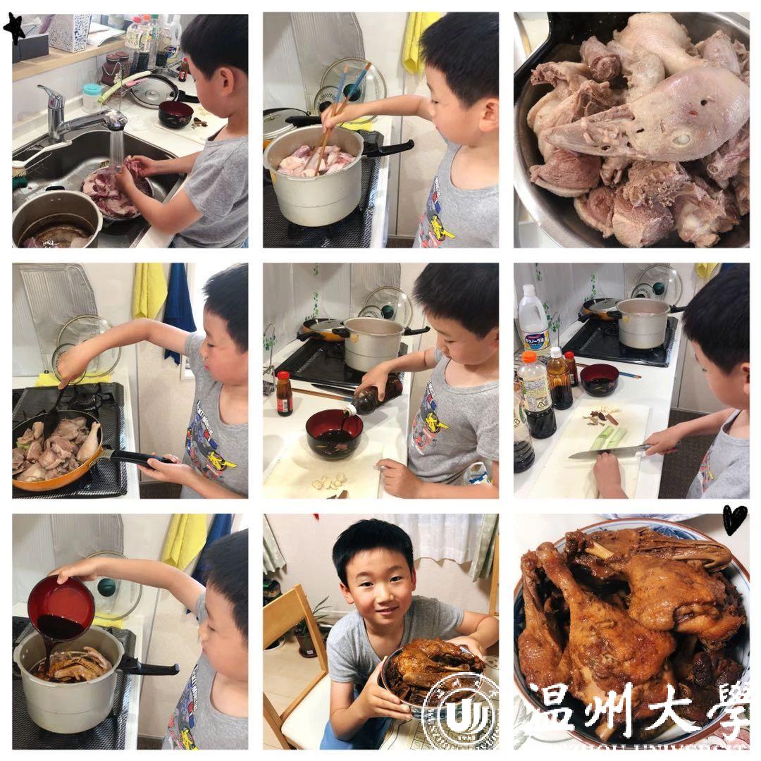 日本的杨弼丞同学,只有8岁,从未落下学习中的任何一次课程,总是在群中第一个说出“老师,我作业完成了”,中文作业一笔一划,古诗朗诵充满情感,小小年纪就满怀着对中文学习的饱满热情。5月9日,在收听了《中国传统故事之东坡肉的故事》之后,小杨同学跟着“打卡”小任务的指引从东坡肉的烧法中获得灵感,烹饪出一道色香诱人的红烧鸭子,并在作业中连连赞叹“在网上夏令营中学会了一道美味的中国菜”。