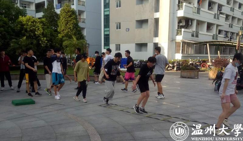 连日来,温大教工阳光突击队员、金牌班主任林小义根据学生所需,从专业教练视角,带着tabata自编操、单腿深蹲等男女生适用的10余项“小运动”下寝室;足球教练林辉老师下寝室时为学生带去足球秘诀“十八”势,“弧线球”等训练小技巧顺手拈来……针对疫期学生身心素质情况,用专业“小心机”让平时在外跑惯的青年大学生“呆得住”“静得下”“动得来”,有效巩固专业素养,增强学生体质、锤炼品格和平衡身心,成为疫期各学院返校生课后的新时尚。宿管阿姨每次都感叹说“我们的老师好负责,今天又有带着“法宝”下寝室了!”