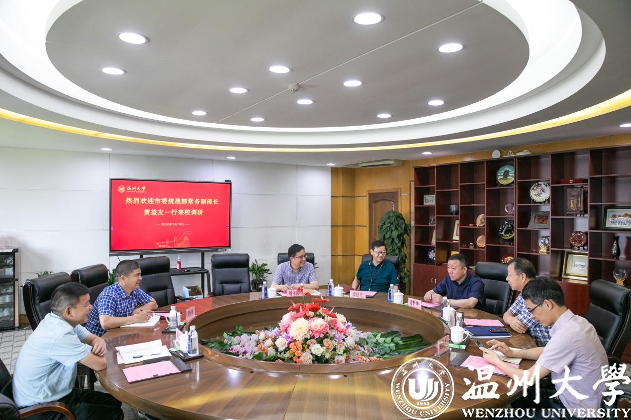 5月19日上午,温州市委统战部常务副部长黄益友一行莅临亚洲无码 ,就学校统战工作开展专题调研。校党委书记谢树华、党委副书记吴金法、党委委员郑信军出席调研会。