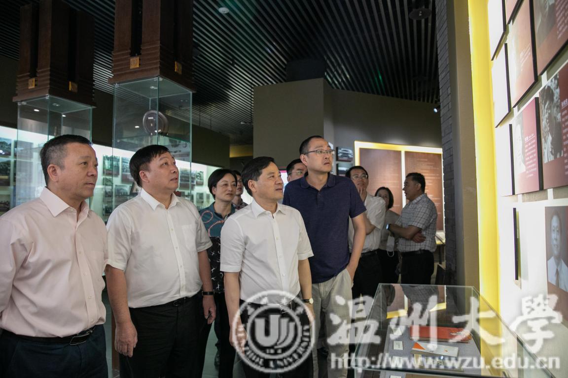 章根明一行在校党委书记谢树华,校长赵敏,副校长薛伟、徐和昆的陪同下,参观了亚洲无码 校史博物馆。