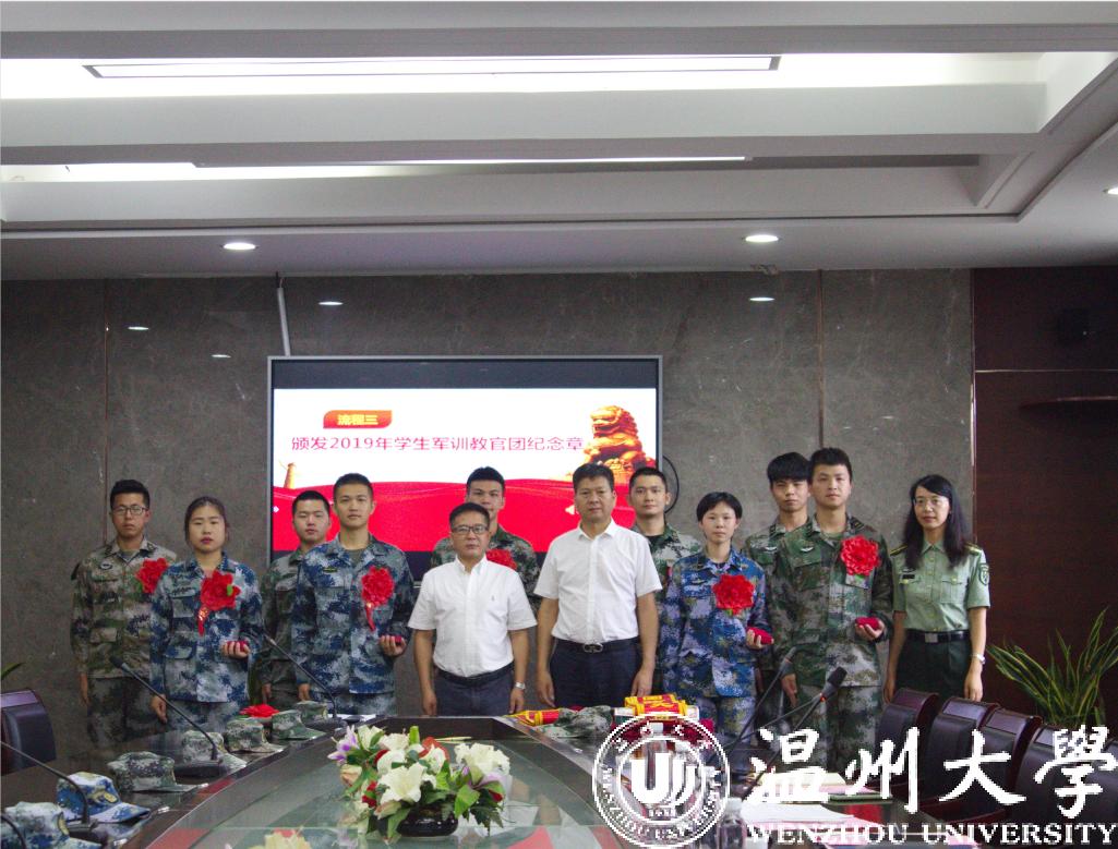 庄兴忠等为获得2019/2020学年学校“国防动员教育先进个人”颁发奖状,为获得“青春温大”·2020年度榜样人物荣誉称号的退役毕业生颁发荣誉证书,为军训教官团成员颁发纪念勋章,为全体退役毕业生赠送纪念品。
