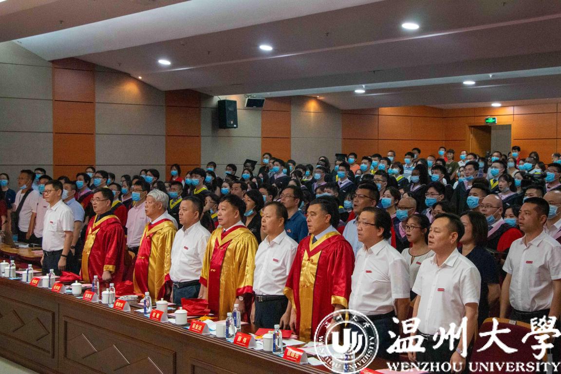 “东海水,雁荡山,我温大精神,浩浩宕宕……”师生们齐唱校歌,忆往昔朝气蓬勃,望明日繁花似锦。此次毕业典礼还同步进行了网络直播,截止发稿,近8万人次在线观看参与了毕业典礼。