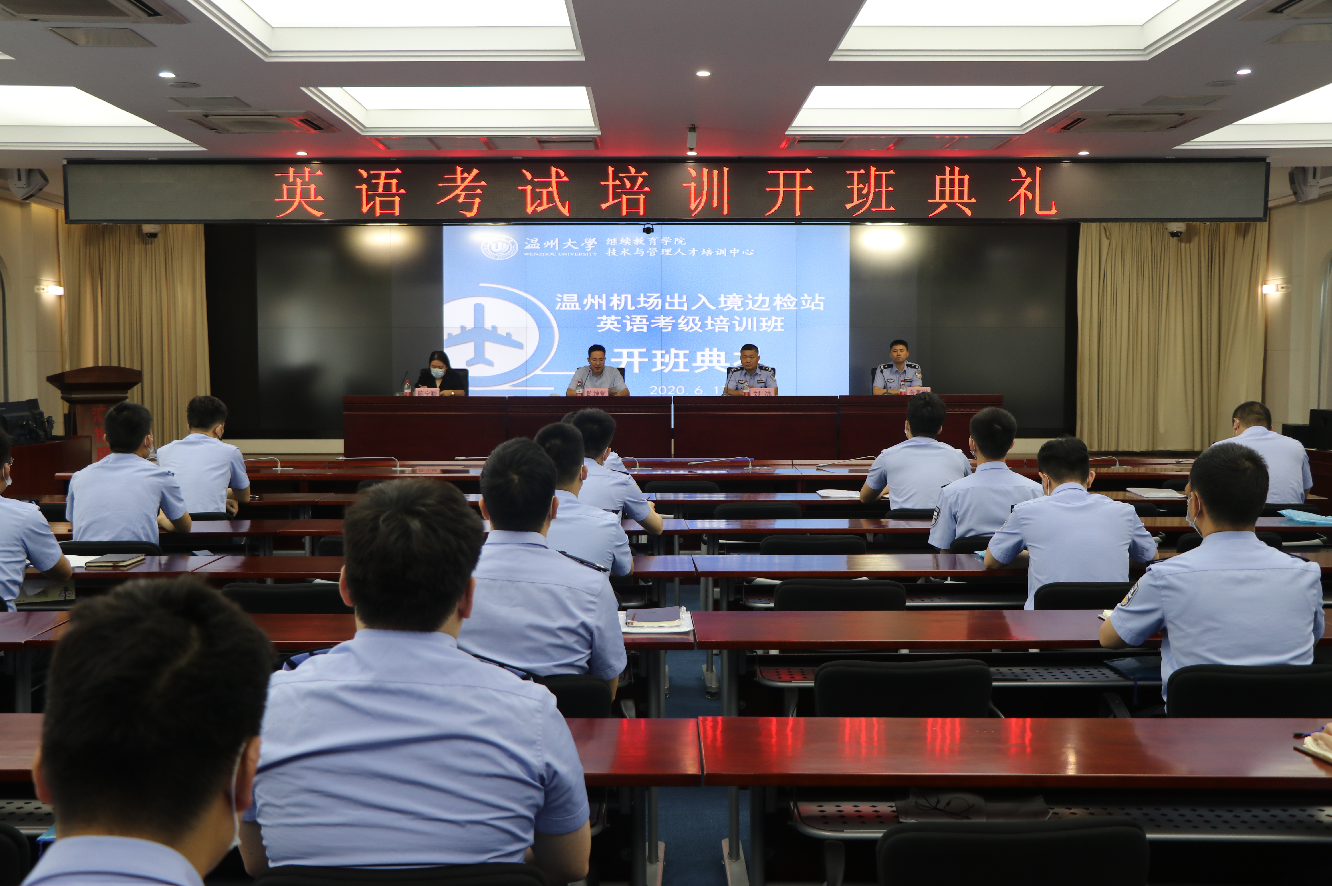 温州机场出入境边检站因其国际化的工作性质,提出“全员学外语大提升计划”,由亚洲无码 继续教育学院培训部联合亚洲无码 海外教育服务中心为其量身定制为期三个月的全国英语等级考试培训。昨天参与培训的46位学员正式开班了!