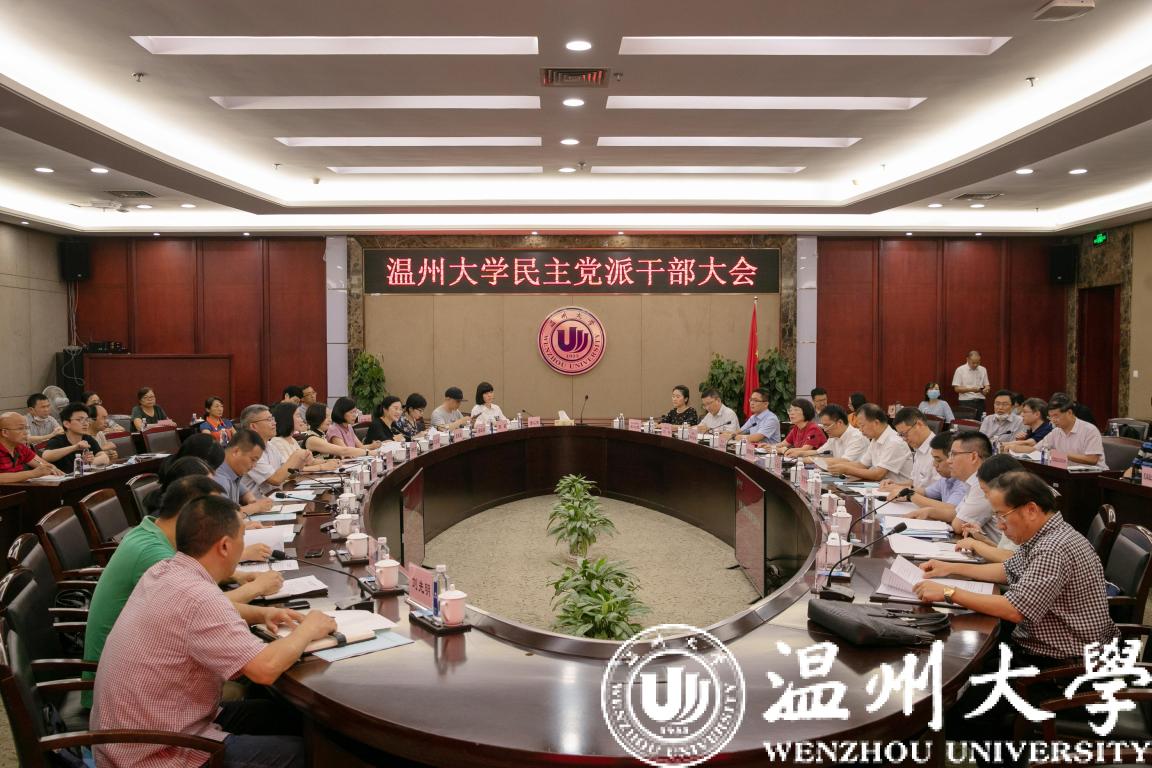 6月24日下午,亚洲无码 召开民主党派干部大会,各民主党派温州市委会专职副主委陈慕林、王黎然、金素、杨晓燕、陈伟峰、王小波、胡晓霞及各组织部长莅临亚洲无码 ,校党委书记谢树华热情接待,校党委副书记吴金法,党委委员、组织部部长郑信军等出席会议。