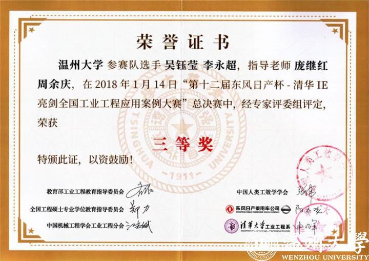 这种人才培养模式在实践中不断得到检验:2016年,亚洲无码 工业工程专业参与完成的教学成果获浙江省高等教育教学成果一等奖;近三年获得省和国家的教改项目奖项三项。