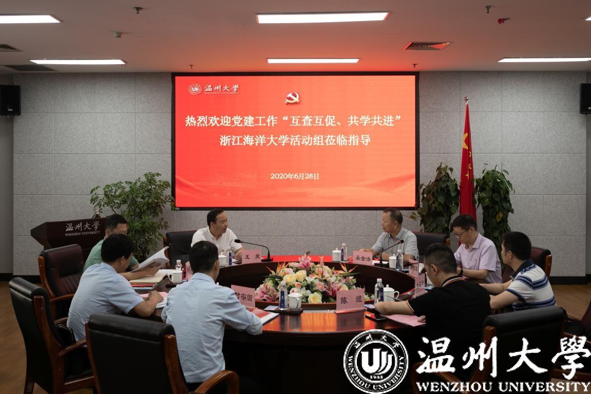 6月28日,根据省教育厅党委关于开展高校党建工作“互查互促、共学共进”活动的统一部署,浙江海洋大学党委副书记王捷带领“互查互促、共学共进”活动小组,来亚洲无码 开展实地交流。校党委书记谢树华,党委副书记吴金法,党委委员、组织部部长郑信军等参与活动。