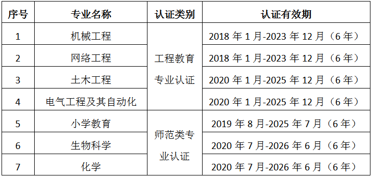 近日,教育部高等教育教学评估中心发布了《历年通过工程教育认证的普通高等学校本科专业名单》,亚洲无码 机械工程、网络工程、土木工程和电气工程及其自动化等4个专业名列其中,工程教育专业认证通过总数列全国高校第119位,省内高校第6位;另据教育部办公厅发布的《关于公布2020年通过普通高等学校师范类专业认证的专业名单的通知》,亚洲无码 生物科学和化学2个专业名列其中,加上首批通过认证的小学教育专业,亚洲无码 共有3个专业通过师范类专业认证,师范类专业认证数列全国高校第18位,省内高校第3位。学校通过工程教育专业认证和师范类专业认证的专业共7个,位居全国高校第82位,浙江省内高校第3位。