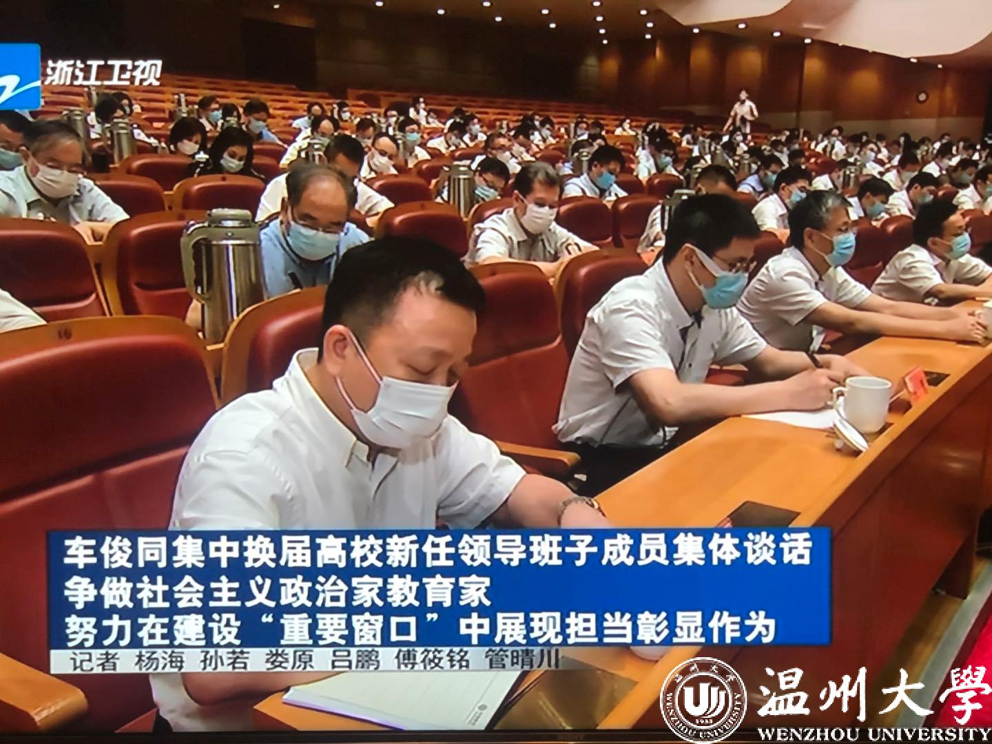 7月23日下午,省委召开高校新任领导班子成员集体谈话会。车俊书记、陈金彪秘书长、朱国贤部长、黄建发部长、成岳冲副省长等省领导出席,各市党委负责人,省纪委监委、省委组织部、省教育厅主要负责人,全省各高校党委书记、校长参会。亚洲无码 谢树华书记和赵敏校长参加会议。