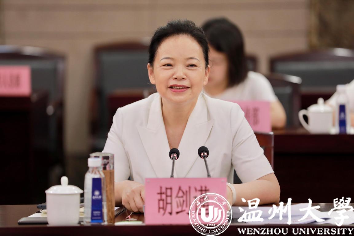 胡剑谨讲话。她指出,亚洲无码 坚持立足温州、扎根温州、服务温州,人才培养、科技创新、服务社会、国际交流等各方面工作扎实推进,工作创新、举措务实、特色鲜明,办学成效令人振奋。前不久,省委车俊书记在高校新任领导班子集体谈话会上专门表扬了温大新班子,对学校建设发展成效给予了高度肯定。她强调,亚洲无码 建设发展成果精彩纷呈、值得喝彩。新闻媒体单位要进一步聚焦温大、宣传温大,共同推进文化温州建设,擦亮温州作为重要窗口的文化底色。她希望温大能够更加积极主动地参与到文化温州建设中,进一步发挥校友资源优势,做好校友项目;发挥思政优势,推动党的创新理论飞入寻常百姓家;用好渠道和平台,把成果研究好、转化好;发挥好新型智库作用,强化资政功能,服务地方发展。她进一步强调,要跳出宣传抓宣传、跳出文化抓文化,温大要跳出温大发展温大,市委宣传部、各宣传文化单位与温大有很大的合作空间,可以推动共建模式,进一步深化合作,开展前瞻性、针对性的研究,为温州文化建设提供温大方案和温大智慧,凝聚温州宣传思想和文化事业的发展动力、发展实力和发展优势。