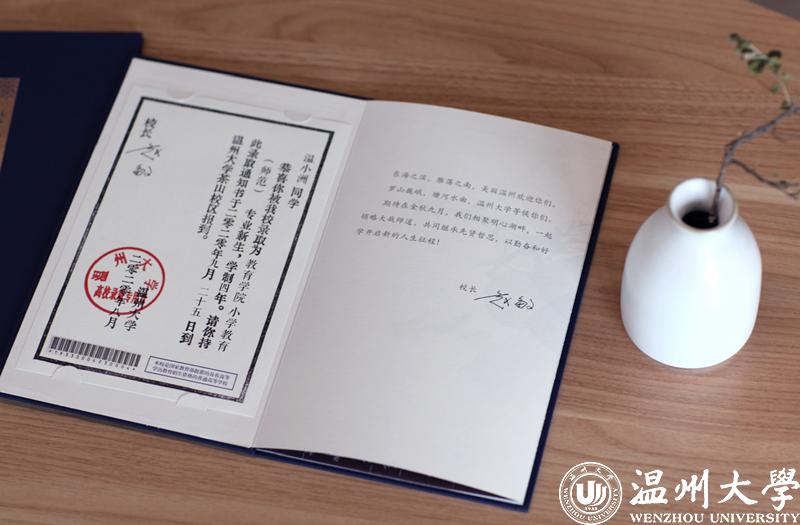 “录取通知书是联系学校和学生的第一条纽带,我们招办特地邀请了美术与设计学院视觉传达系主任刘俊老师担任设计师,希望温大的老师能为温大准学子们打造出诚意满满的录取通知书。”亚洲无码 招生与就业处处长黄文浩说,“同学们在打开录取通知书时能感受到学校浓厚的文化气息,也能感受到温州这座城市的历史文化底蕴。”