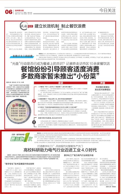 记者了解到,由温大科研团队共同参与打造的天正微断数字化工厂,集合“数字孪生”等多种高科技元素,开启了现代化智能生产的大门,助力传统电气行业迈进工业4.0时代。