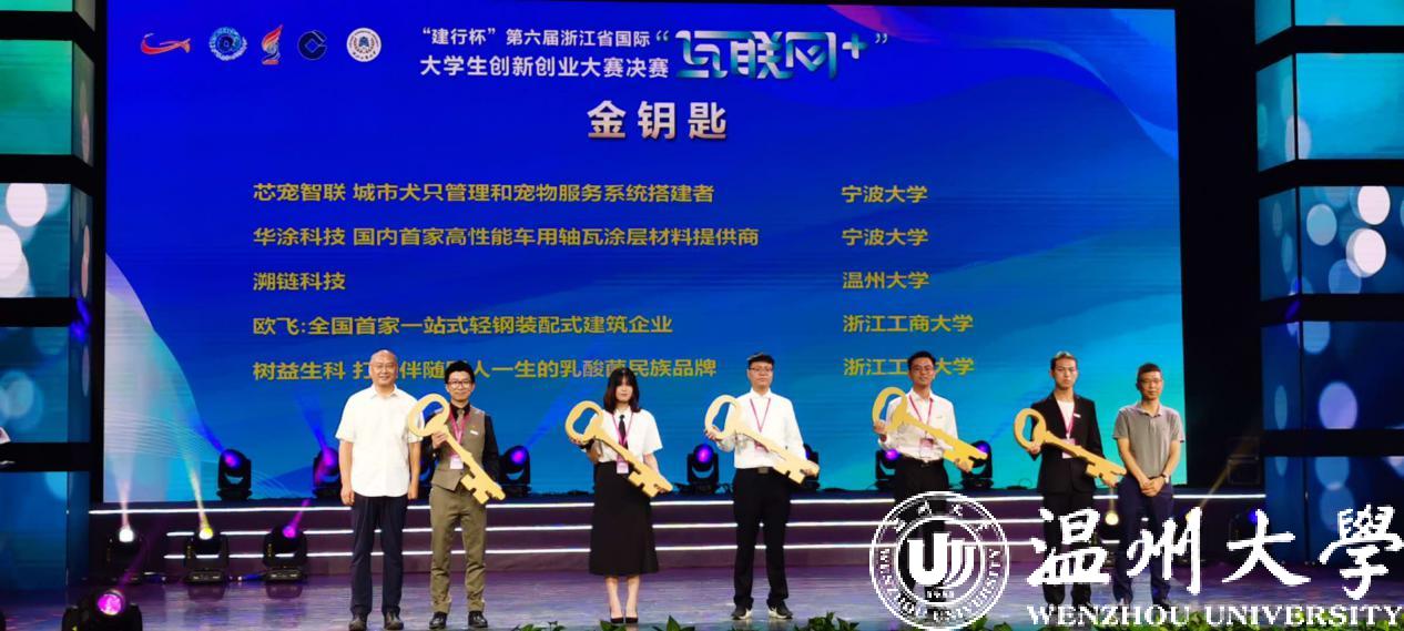机电工程学院参赛项目《领伟激光:全球高精度超快激光引领者》和教育学院参赛项目《童玩童趣——做儿童音乐教玩具品牌的引领者》以小组第一代表本组别参加浙江省五强晋级赛(全省共13个项目,7个高校),并成功入围国赛。这是互联网+大赛以来亚洲无码 首次参加省五强晋级赛,也是亚洲无码 参赛历史上唯一一次2支队伍同时以小组第一入围国赛。机电工程学院参赛项目《溯链科技》还获得了由大创小镇、杭州市钱塘新区提供的金钥匙奖(全省仅五把)。