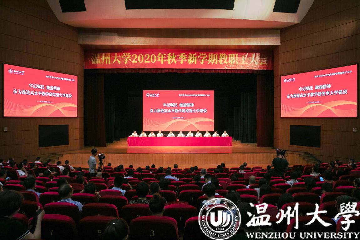 赵敏对新学期工作进行部署。他指出,新学期学校工作“主题”是“锚定‘1357’,奋进2020”;“主线”是“1个定位不动摇、3大目标聚人心、5项重点求突破、7大战略强内涵”;“主攻点”是申请获批博士学位授予单位;“主动力”是深化完善学校内部治理,通过改革创新解难题、破堵点、增动力;“主力军”是全体教职员工,要充分依靠“四有”好老师和忠诚干净担当的好干部,着力打造靠得住、信得过、冲得上的温大之师。他强调要抓好七方面工作:一要突出重点工作,科学谋划发展战略布局。二要坚持立德树人,大力提升人才培养质量。三要做强学科科研,持续提高服务地方能力。四要促进师资发展,加强教师干部队伍建设。五要拓展维度和深度,着力提高开放办学水平。六要聚焦民生保障,不断提升内部治理效益和水平。七要进一步加强党的建设,提供坚强有力保证。